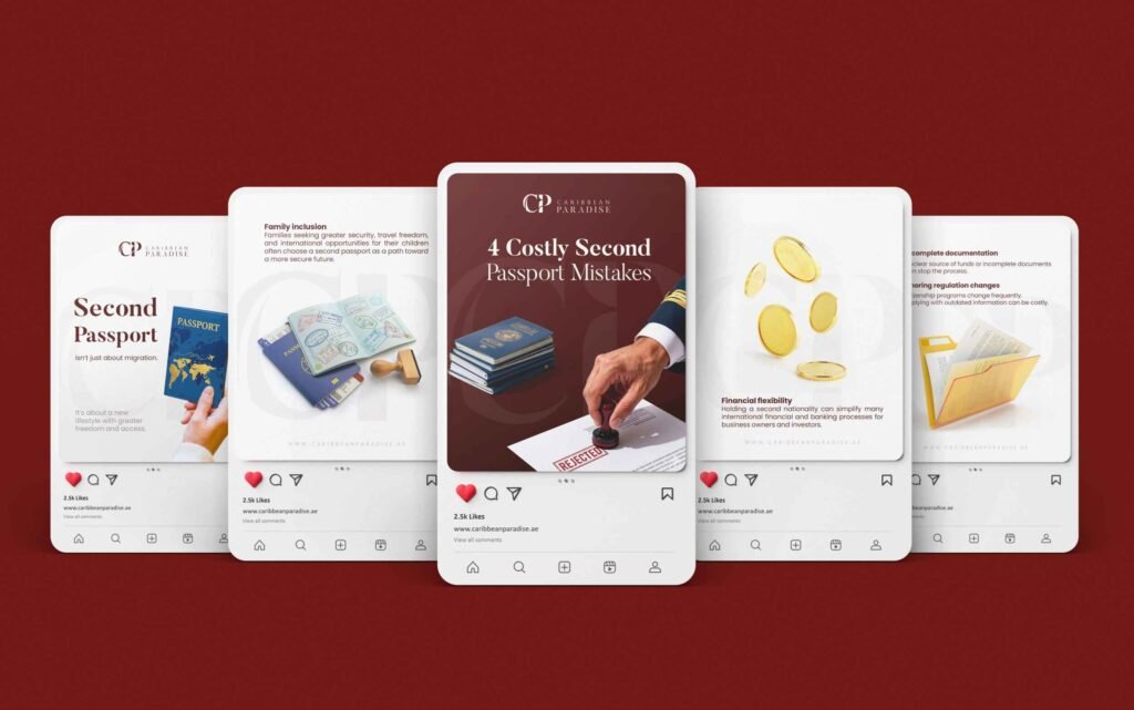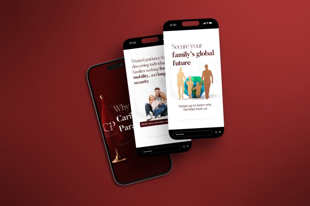 Caribbean Paradise is a Dubai-based citizenship advisory firm with over 10 years of experience in second citizenship and Caribbean investment programs. Our team developed and executed a focused brand and marketing model for the company — including website design and development, visual identity design, website content creation, social media content production, and Meta Ads campaigns aimed at expanding lead-generation channels and strengthening brand trust.