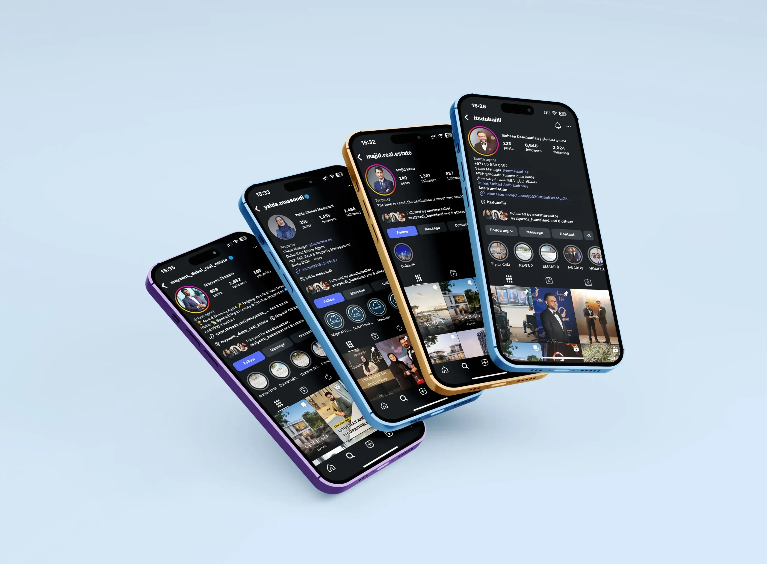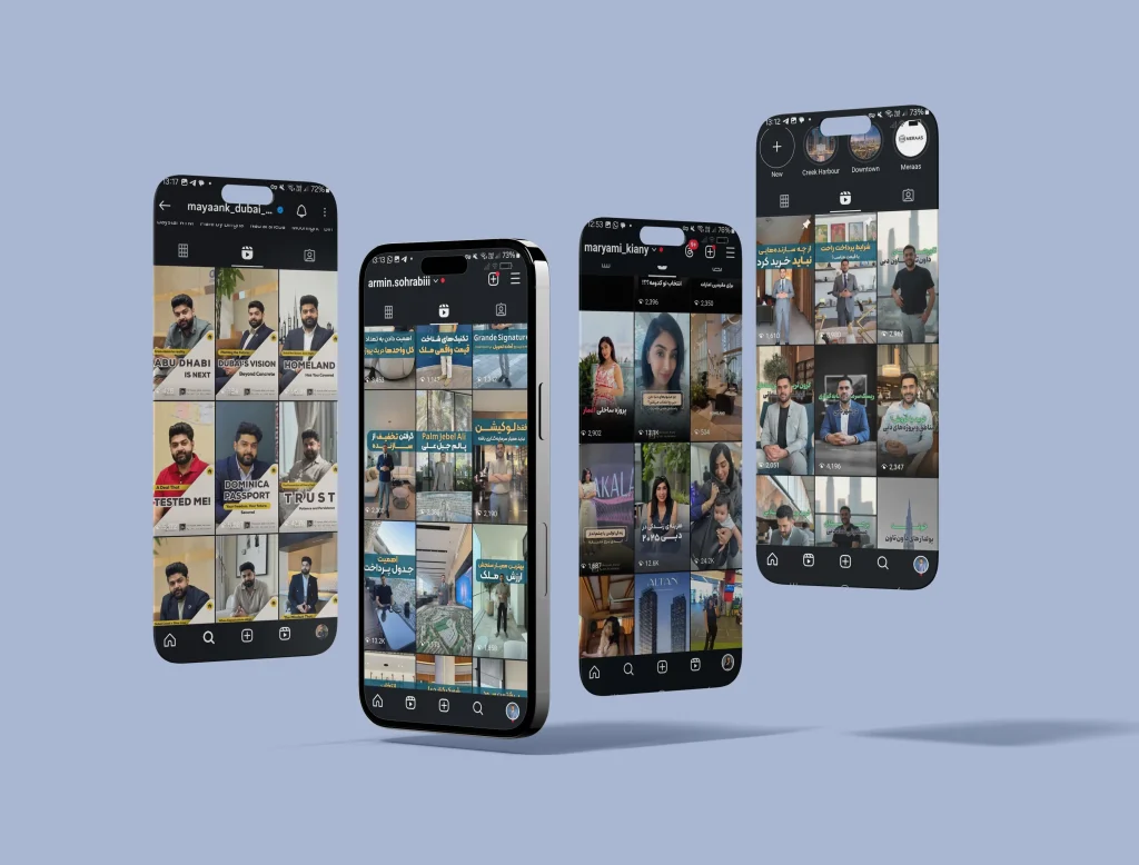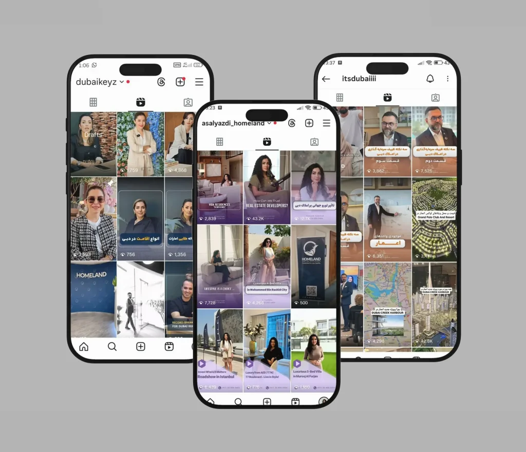 In the Homeland project, we strengthened the brand’s digital presence through a customized social media strategy, dedicated content production, and visual identity design for over 20 agents. As a result, Instagram became a direct lead-generation source and one of the company’s most effective sales channels.