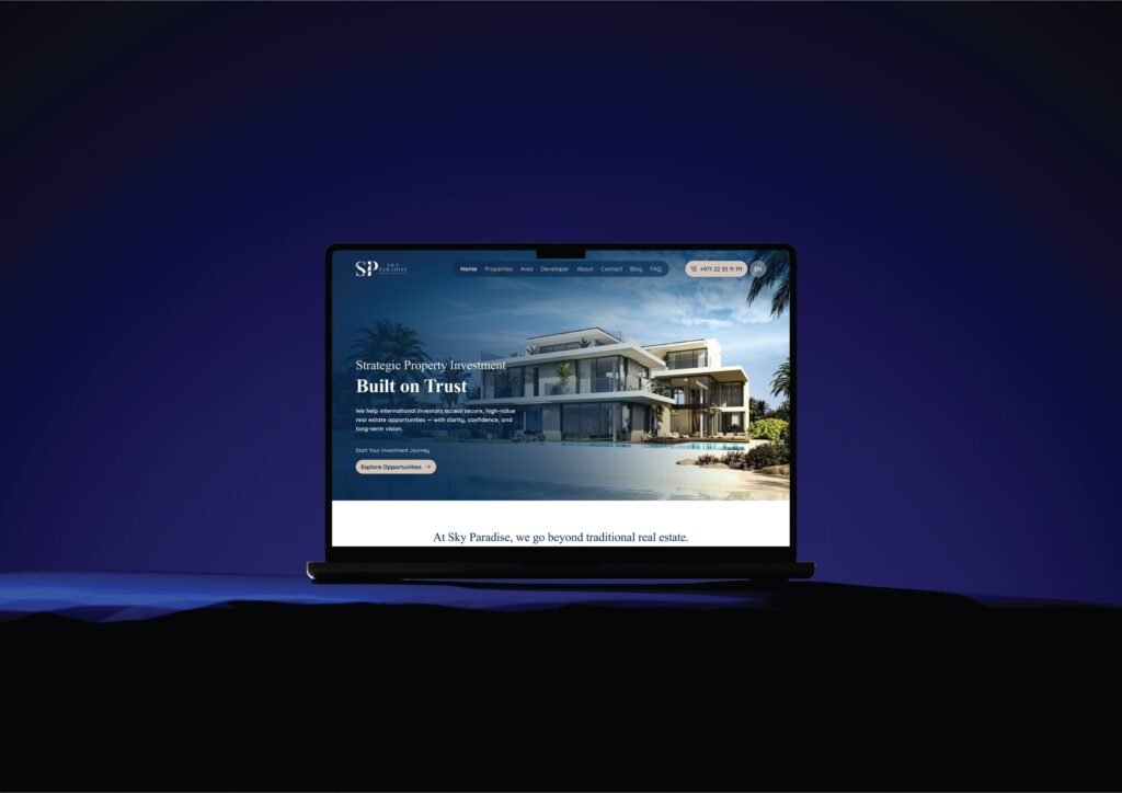 Sky Paradise is the property investment advisory arm of Paradise Group, created to help international investors access secure, high-value real estate opportunities with greater clarity and confidence. Our team developed and executed a focused brand and marketing model for Sky Paradise — including brand strategy, website design and development, visual identity design, website content creation, social media content production, and Meta Ads campaigns aimed at expanding lead-generation channels and building a more credible investment-focused brand presence.